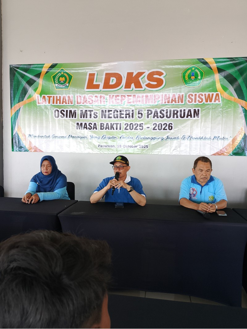 Pasuruan (MTsN 5 Pasuruan) — Sebanyak 35 siswa pengurus OSIM MTsN 5 Pasuruan mengikuti kegiatan Latihan Dasar Kepemimpinan Siswa (LDKS) yang dilaksanakan di Bakti Alam Ngembal, Pasuruan, pada Sabtu, 19 Oktober 2025. Kegiatan ini menjadi momentum penting dalam membentuk jiwa kepemimpinan dan tanggung jawab pengurus OSIM masa bakti 2025–2026.
