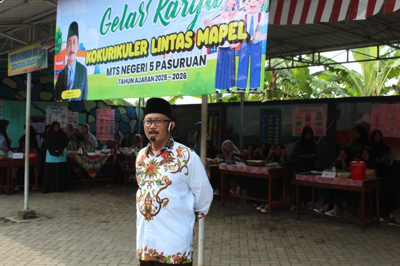 Pasuruan — MTs Negeri 5 Pasuruan menggelar kegiatan Gelar Karya Ko-Kurikuler Lintas Mapel pada Sabtu, 25 Oktober 2025. Kegiatan ini menjadi ajang unjuk karya dan kolaborasi antarmata pelajaran yang dikemas secara kreatif oleh para siswa dari kelas VII, VIII, dan IX.